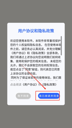 1、点击我已阅读并同意进入应用。