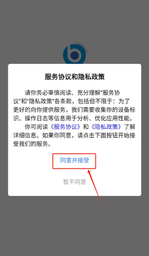 1、点击同意并接受进入应用。