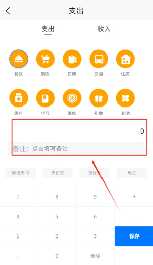 2、输入明细添加新的账单。