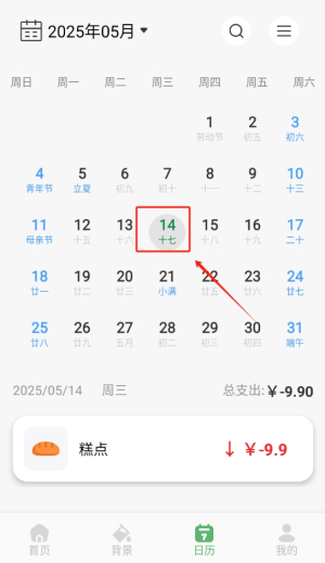 3、日历查阅功能,用户可以轻松查看每一天的账单记录,确保不会漏掉任何交易,通过日期查看账单信息让财务管理更为清晰。