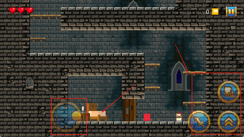 2、左侧是移动,右侧是攻击,跳跃和交互键。