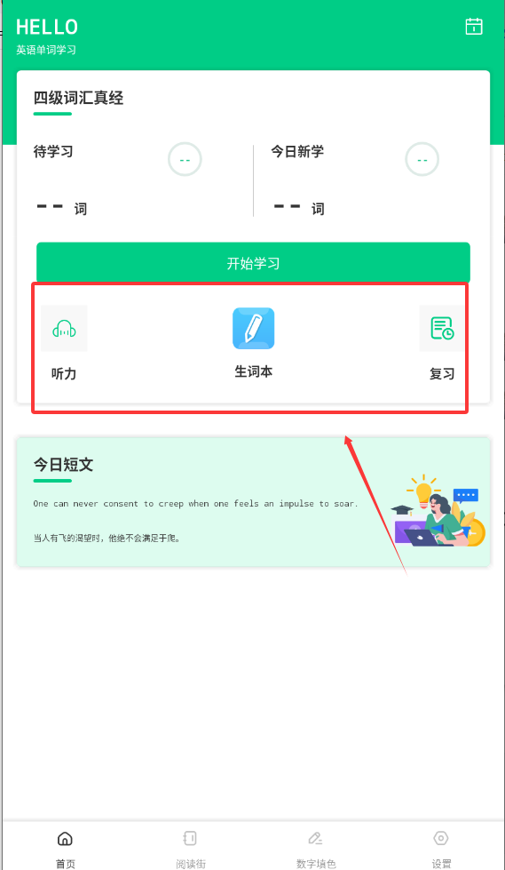 3、阅读模块内置翻译批注功能,长按单词即可查询释义并加入生词本,实现边读边学的无缝知识积累。