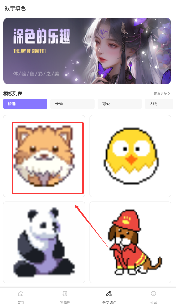 3、进入数字填色,写好的文章可以自行填色使用即可。