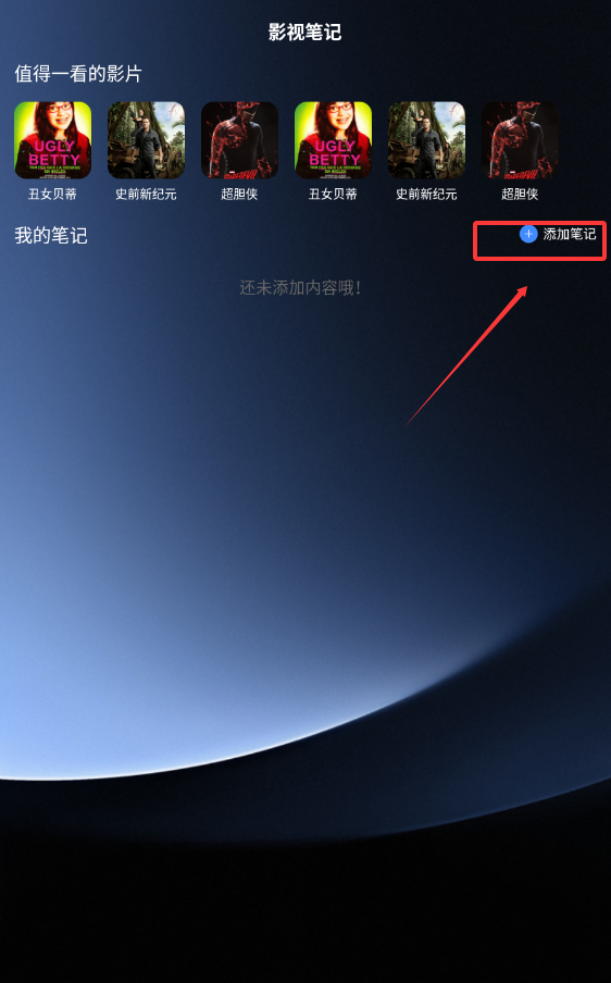 2、遇到喜欢的电影可以添加到笔记,方便下次观看。