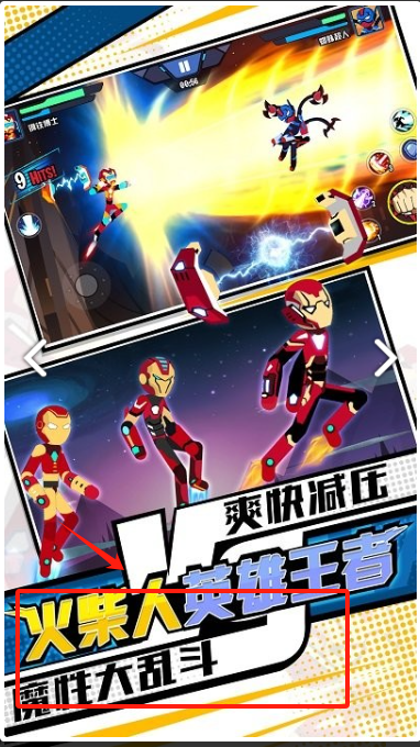 2、战斗一触即发,上方有钢铁侠等超级英雄,下方有蜘蛛侠等火柴人英雄,不同的背景可随意切换。