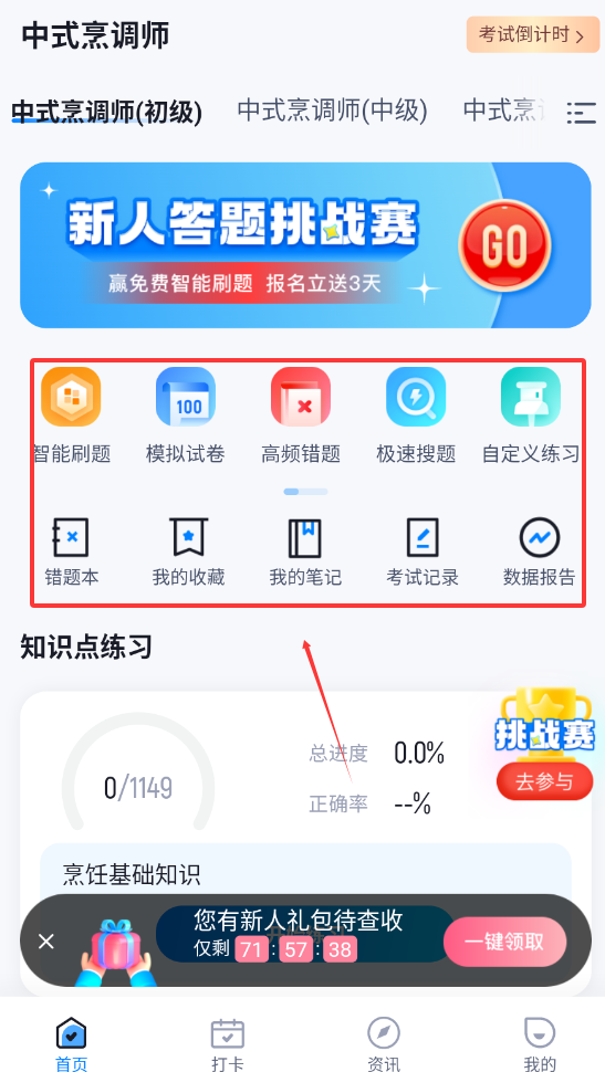1、章节练习功能按照考试大纲系统划分知识点模块,考生可自主选择特定章节进行针对性训练巩固专业技能。