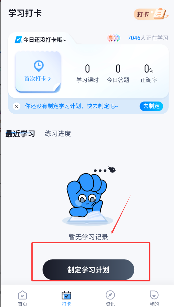 2、在学习期间,想要更加精进,可以在学习打卡内设定计划即可。