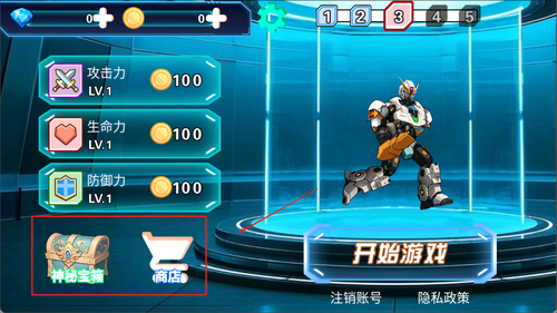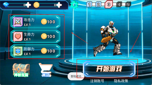 2、在战斗胜利后可以使用获得的奖励进入商店解锁新的机甲。