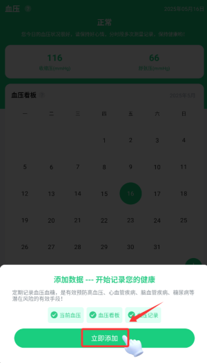 3、保存后生成健康档案,建议每日定时记录形成完整趋势图。