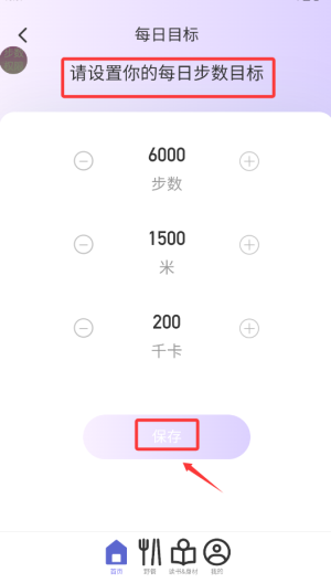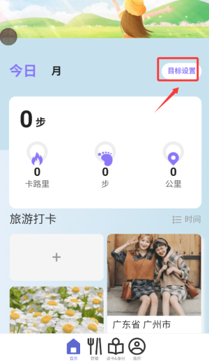 1、进入应用后,点击"目标设置"图标进入步数计划设置页面。