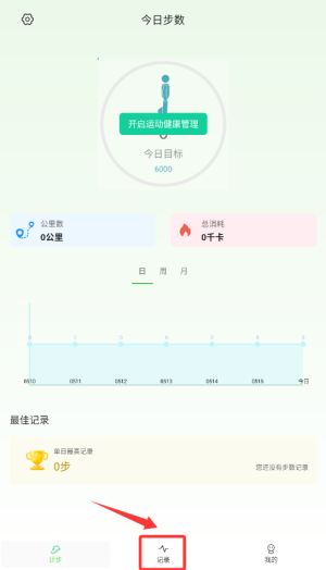 1、登录应用后,在首页选择"记录"功能进入记录管理页面。