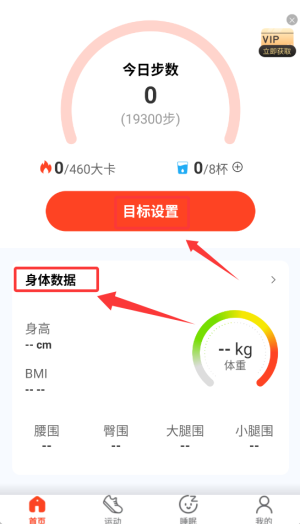 2、在个人中心完善身体数据后,进入"目标管理"设置页面。