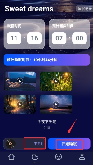 1、登录应用后,在首页底部选择"睡眠设置"功能进入定时管理页面。