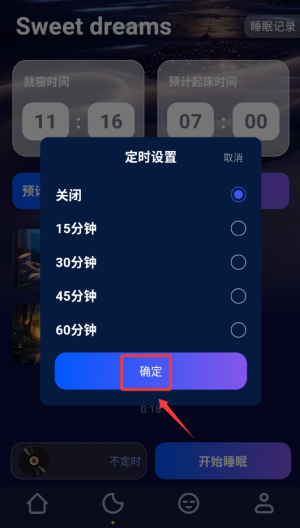 3、设置完成后点击"确认",系统将自动记录睡眠质量数据。