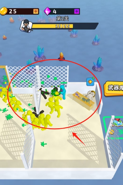 4、即时战斗反馈,成功击杀僵尸触发 “金币爆落” 音效与经验值增长,连续击杀激活 “狂暴连击” 大幅提升伤害。
