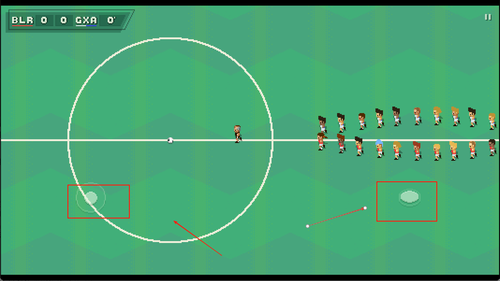 2、左侧控制球员移动方向,右侧为传球与射门按钮,界面显示控球率、比分与比赛时间便于掌握节奏。