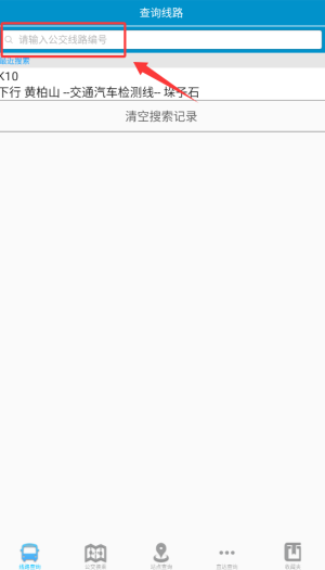 1、启动肥城掌上公交APP后,在首页点击"线路查询"功能,进入公交线路检索页面。