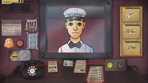 1、开始游戏后进入门卫室,点击屏幕切换监控摄像头查看各个楼层情况,留意所有经过的人物行为举止。