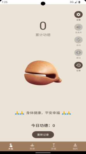 1、电子木鱼修行:模拟传统木鱼敲击体验,支持手动/自动两种模式。敲击数据云端同步,永久保存修行记录。