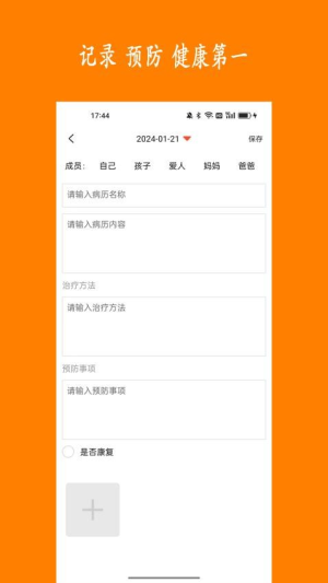 1、家庭健康守护:专为家庭健康管理设计,可同时记录多位家庭成员的健康档案,建立完整的家庭健康数据库。