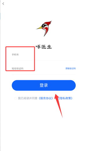 1、进入啄医生APP后,使用手机号验证码登录个人账号,确保病情数据安全存储。