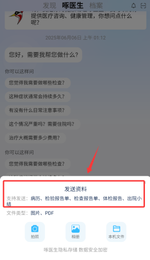 3、通过"报告上传"提交检查资料,系统将生成专业解读并给出诊疗方案。
