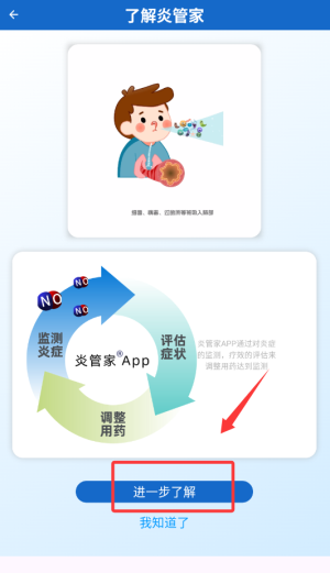 2、选择二级页面的"进一步了解"选项,进入疾病分类模块查阅呼吸系统炎症的详细病理说明。