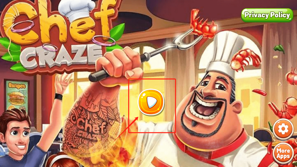 1、点橙色PLAY按钮开始游戏,戴纹身的大厨会教你做汉堡。