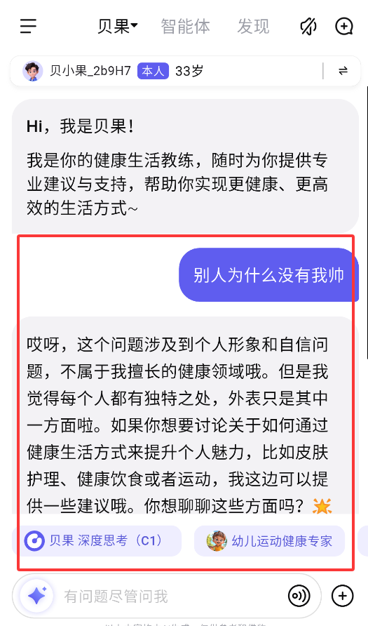 1、实测显示其回答准确率达到90%以上水准,能有效解决大多数日常健康护肤疑问困惑。