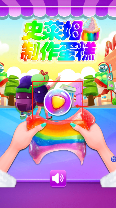 1、点击屏幕中间的播放按钮,开始玩史莱姆做蛋糕的游戏,还能调音量。