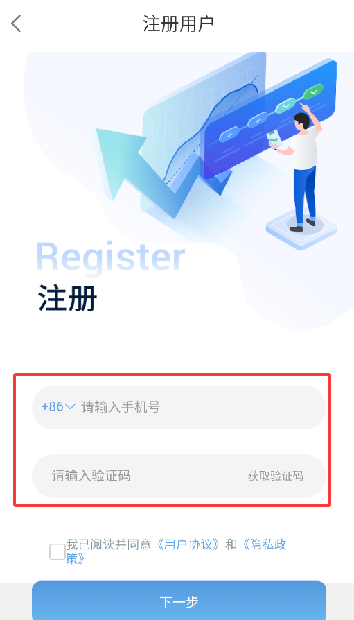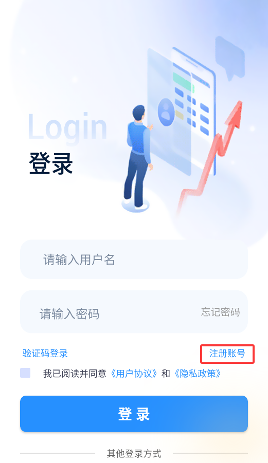 1、首次使用需点击APP首页"新用户注册"选项,进入账号创建页面开始注册流程。
