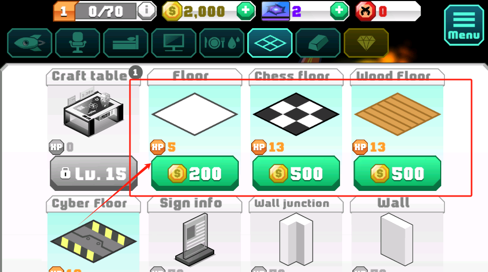 3、看地板的价格和耐久值,选个喜欢的点购买装饰飞船。