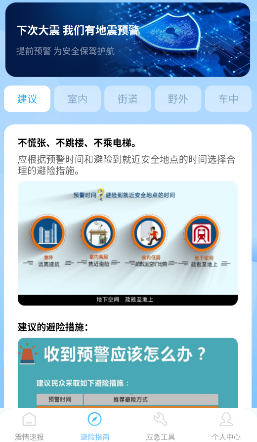 3、专业避险指导:由地震专家团队编制的避险方案,针对不同建筑类型和场景提供个性化逃生建议。
