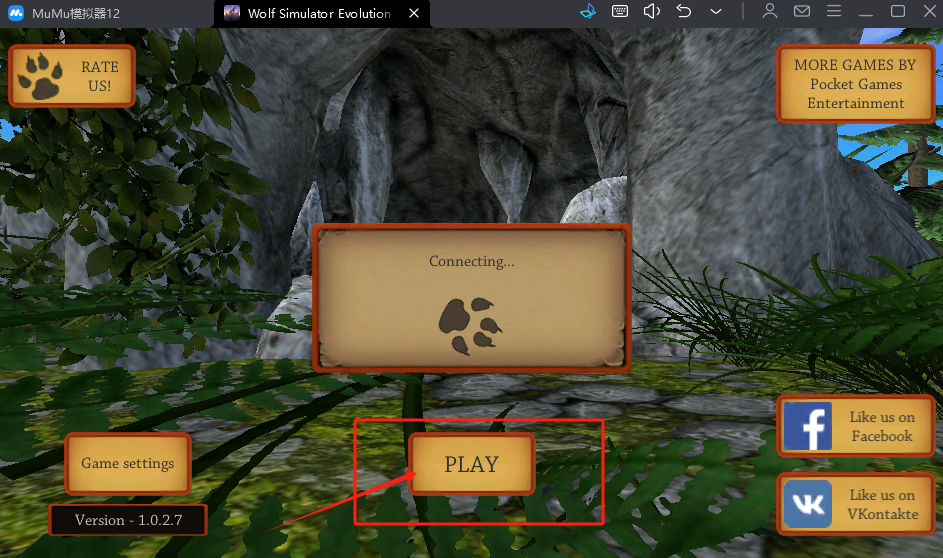 1、点中间红框PLAY开始游戏,其他按钮能评分或看更多游戏。