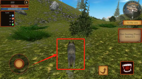 2、用左下摇杆控制狼移动,完成杀0/2的狩猎任务,注意血条状态。