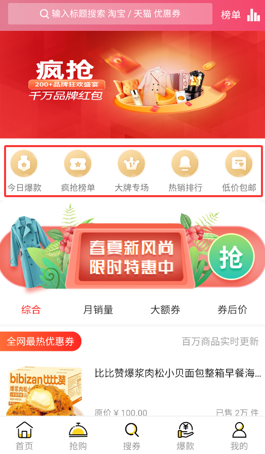 3、通过"搜券"功能输入商品关键词,系统会智能匹配可用优惠券及折扣商品信息。