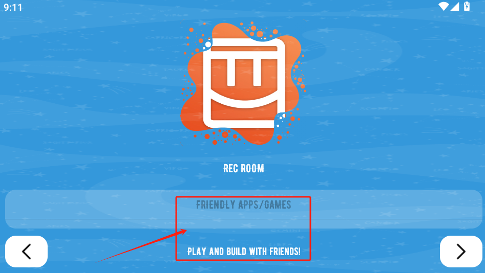 1、点中间红框里的FRIENDLY APPS/GAMES开始游戏,左右箭头能查看更多推荐。