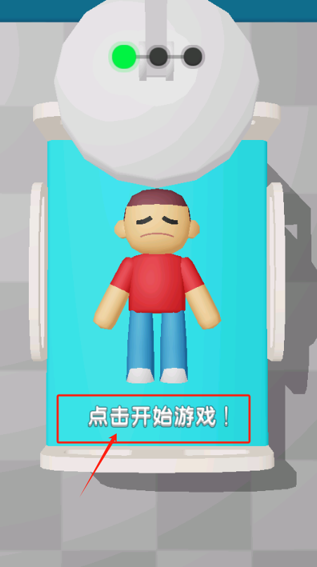 2、游戏开始界面,点击红框里的点击开始游戏按钮,小人就会站在蓝色平台上。