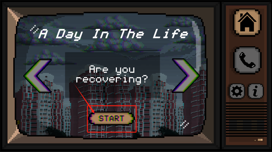 1、游戏开始界面,点击红框里的START按钮开始游戏,右边图标可以查看其他功能。
