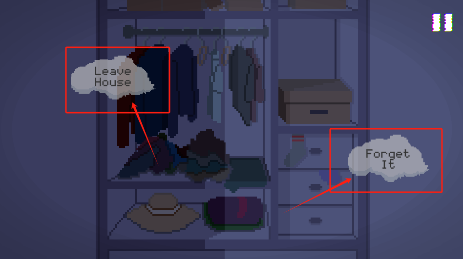 3、衣柜界面,选择Leave House出门或Forget It取消操作。