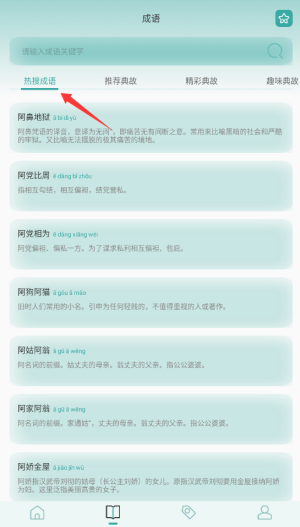 2、浏览成语列表时,可通过首字母检索或分类标签筛选,快速找到目标成语点击查看。