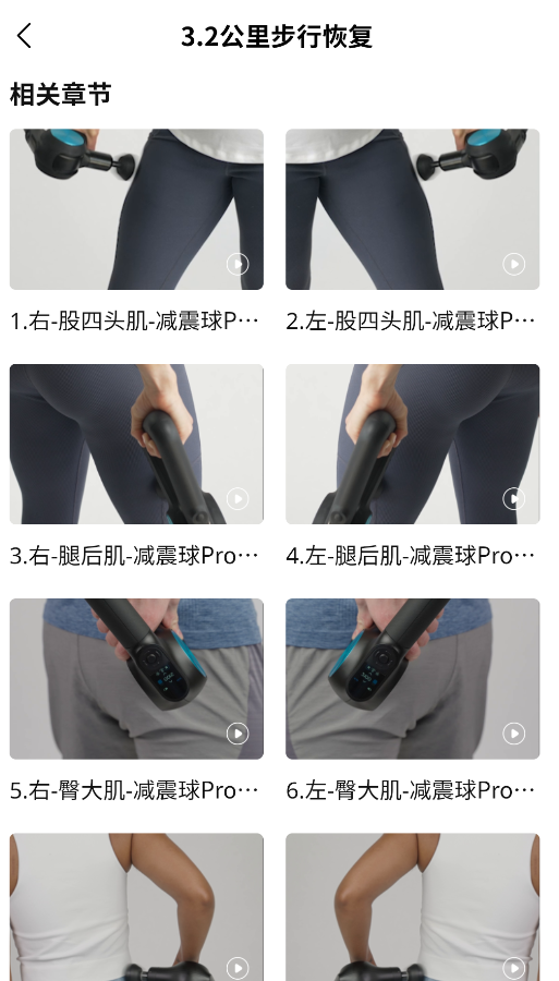2、根据引导视频学习专业手法,设备会智能调节力度和频率(如恢复模式/运动后放松)。