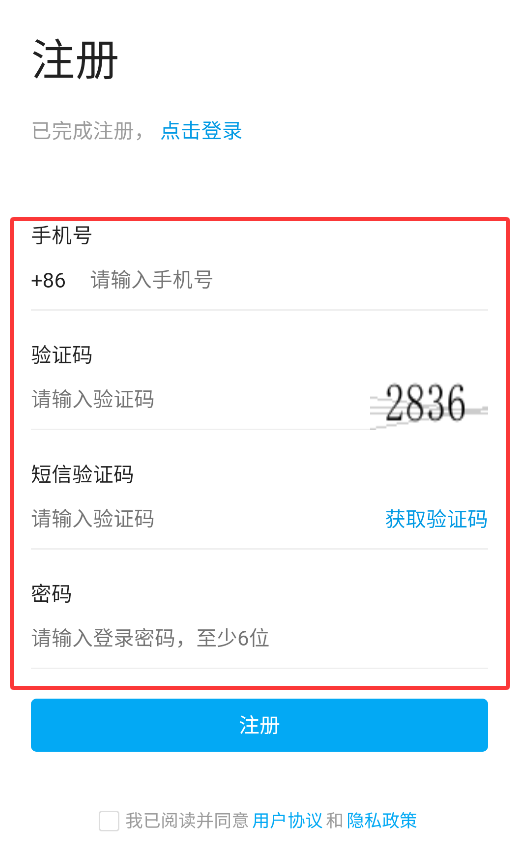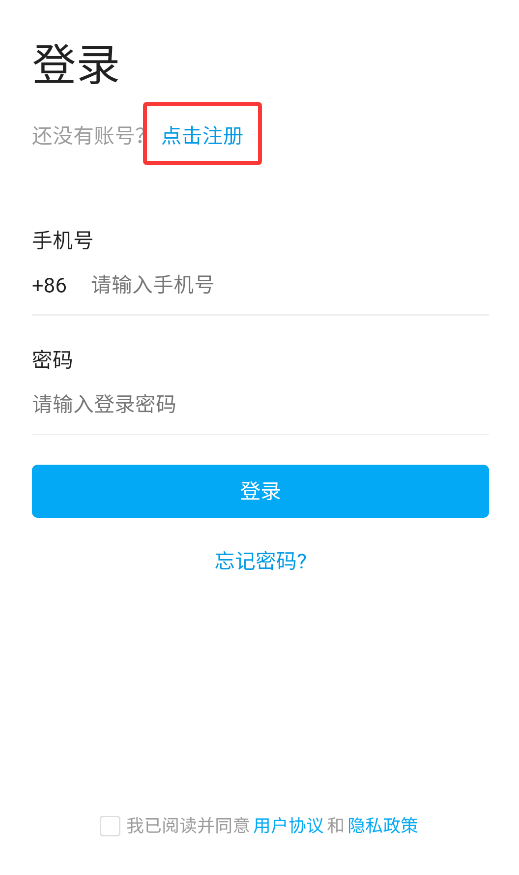 1、启动APP后,在登录页面点击“用户注册”按钮,进入账号创建流程。