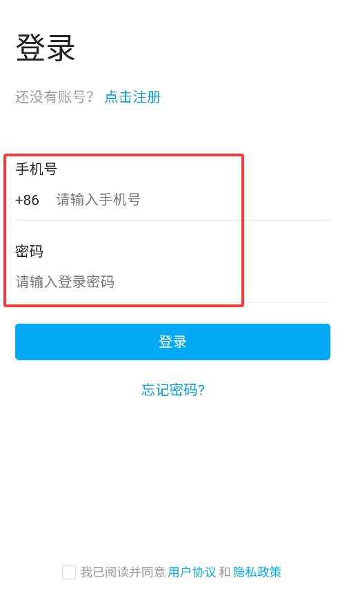 3、完成注册后返回登录界面,使用手机号和密码即可成功登录系统。