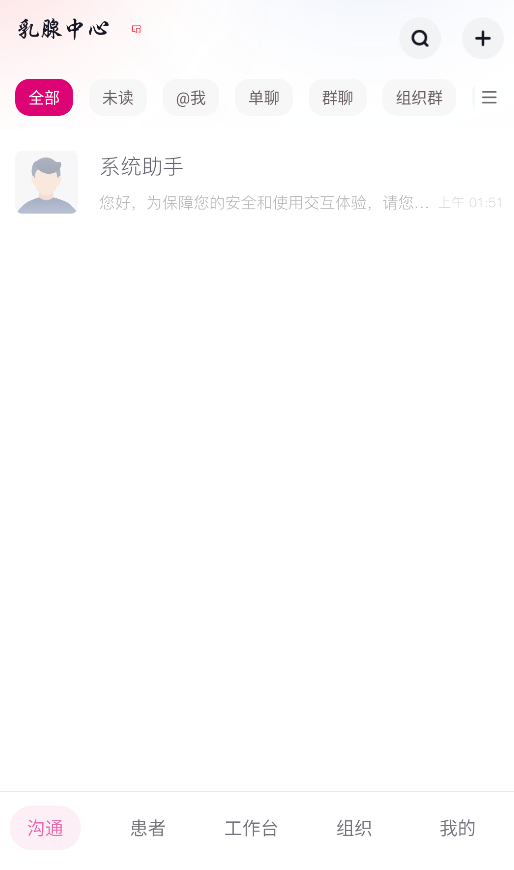 1、启动APP后,进入“消息中心”可查看未读提醒、私聊及群组讨论(如病例会诊),支持@消息快速定位。