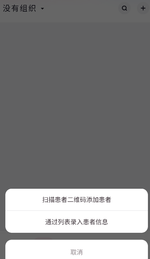 2、通过“患者管理”扫描电子健康卡二维码添加病历,或手动录入基本信息建立档案。
