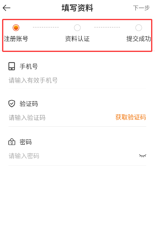 1、完成注册后进入认证页面,拍摄上传相关证件,等待平台审核通过。