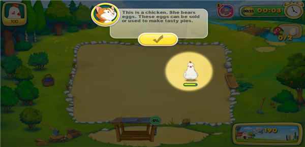 2、游戏中的第一只鸡会开始下蛋,鸡蛋可以卖掉,也可以用来制作美味的馅饼。