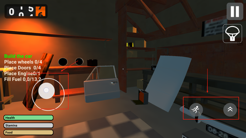 2、左侧是控制方向的虚拟摇杆,右侧设有加速、刹车以及手刹按钮,界面下方显示油耗、速度与剩余资源信息。