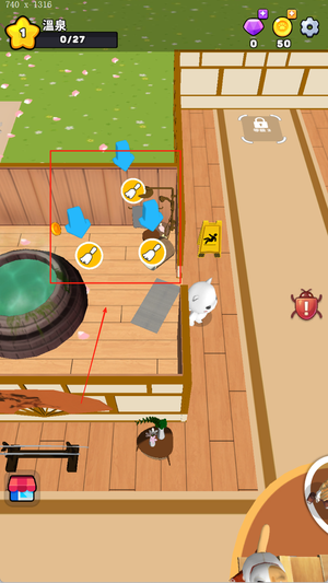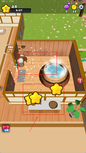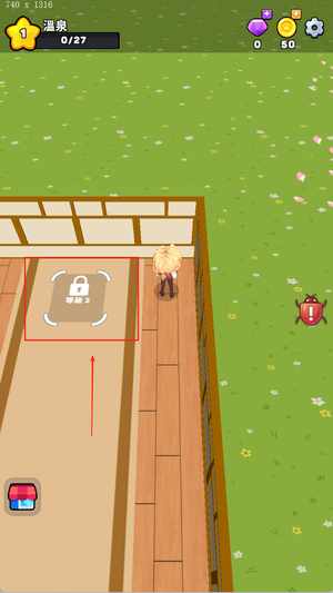 3、温泉乐园可以持续建造与升级,随着等级提高就能解锁新功能与任务内容,还能获得大量资源促进整体发展。